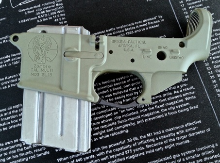 - Spike’s “Zombie” stripped lower, Spike’s 5.56 16” M4 LE w0” BAR Rail (buffer tube on lower is just test fitted – not installed – it is upside down in the photo anyway)