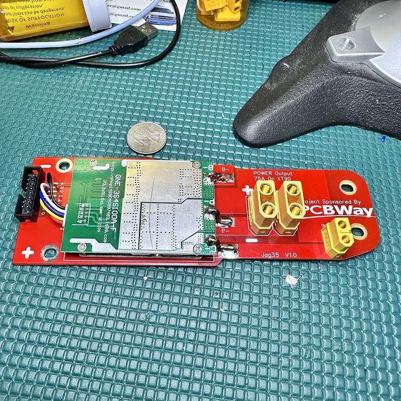 On the jag35.com web site there were plans for a custom BMS (battery management system) PCB board and a parts list. Using those plans and parts a custom PCB was ordered from PCBWay and assembled: