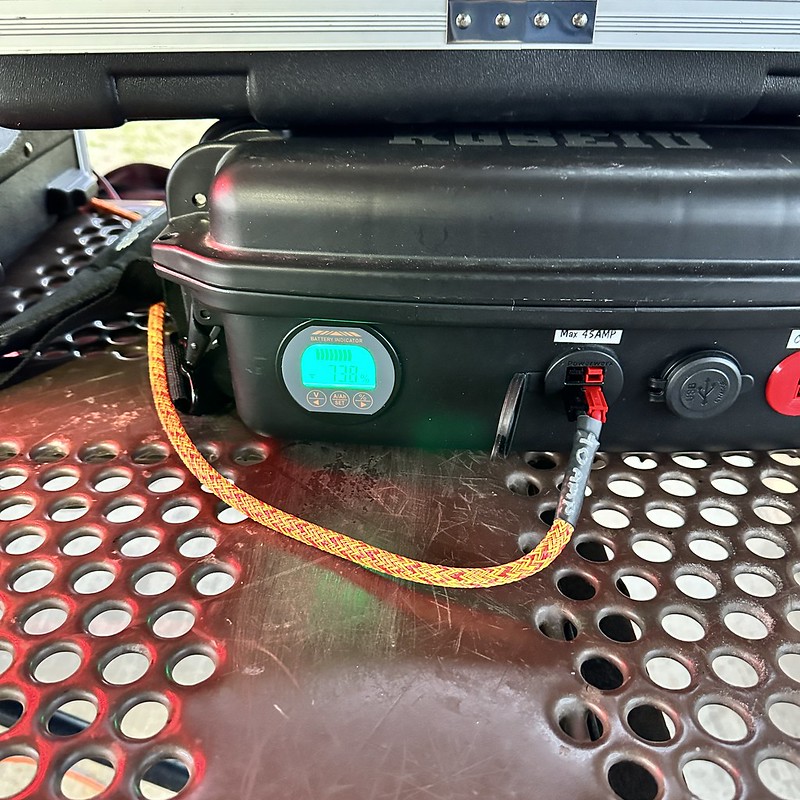 The first real field use was Winter Field Day 2023 – This pack is easy to move around and carry out to the park and using a Power Pole jumper cable was super easy and fast to power up a go-box. The pack was used for just over 6hrs of continuous use with a Yaesu 991 radio running SSB non-stop at 100W – at the end of the day over 73% of the pack was left – the fuel-gauge AMP meter was a nice addition to keep track of use and battery level.